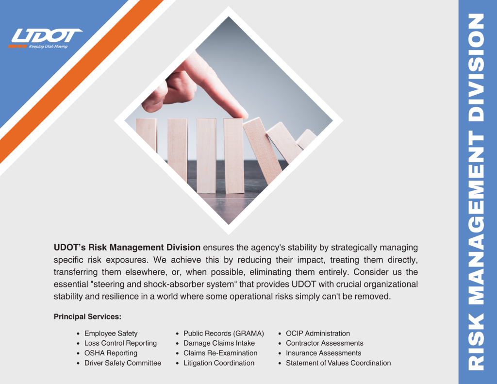 UDOT’s Rolling Owner Controlled Insurance Program (OCIP) provides comprehensive liability protection for large-scale highway construction projects (over $75M). This program safeguards taxpayer investments by shielding both UDOT and its contractors from catastrophic losses. Furthermore, the Rolling OCIP fosters an optimized construction safety environment through systematic, proactive inspections, directly coordinated with private-sector insurance providers.